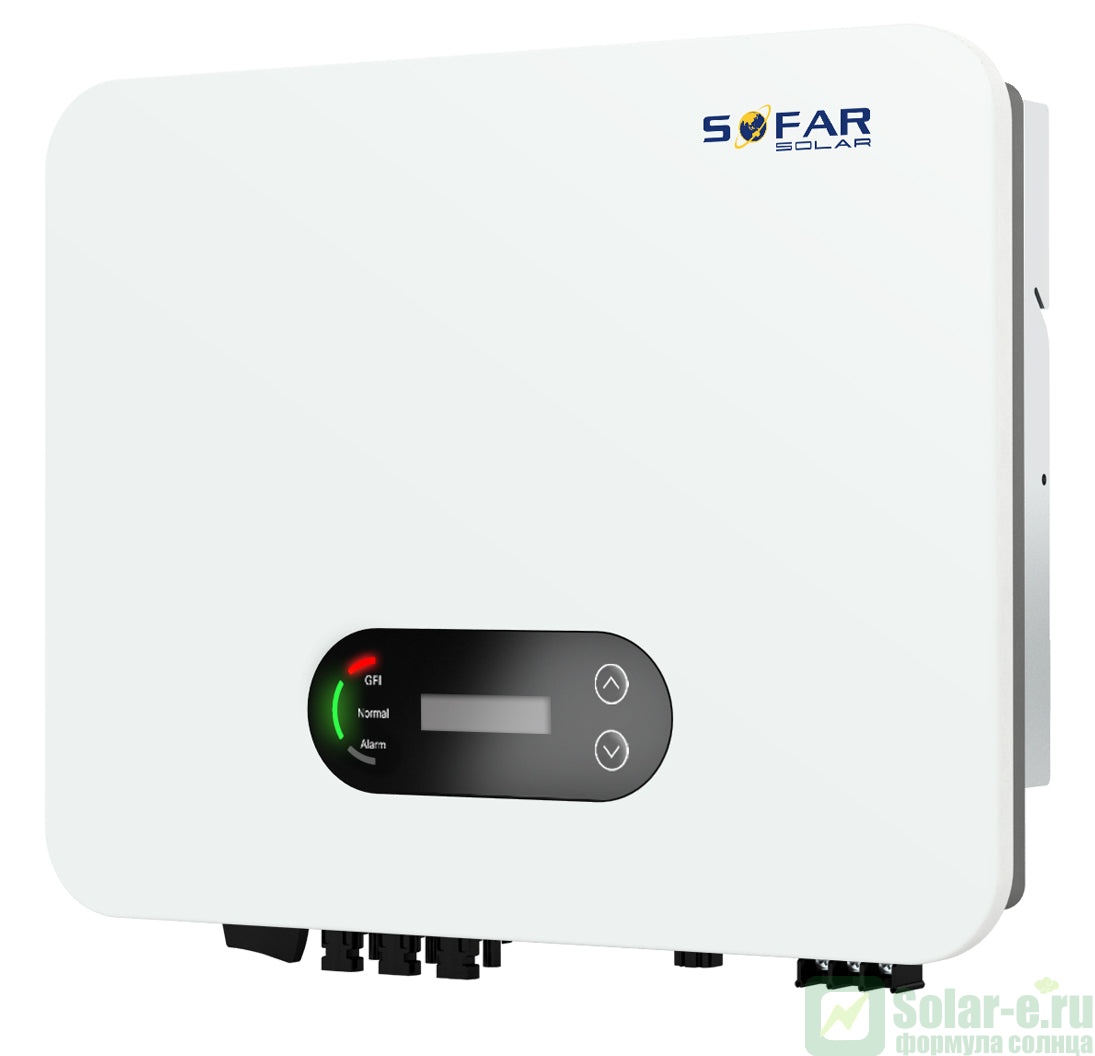 Сетевой солнечный инвертор SOFAR 10KTLM-G3 для микрогенерации это современный и высокоэффективный фотоэлектрический сетевой инвертор с MPPT контроллерам заряда второго поколения увеличенной входной мощностью от солнечных батарей. Данный инвертор полностью подходит для построения гелиосистемы для экономии и продажи электроэнергии в сеть ( объекта микрогенерации ). Инверторы серии KTLM-G3 имеют уникальную встроенную функцию - возможность снижения мощности по команде делимитера (устройства, отслеживающего передачу электроэнергии в сеть). Датчики делимитера устанавливаются перед счетчиком, если определяется отдача электроэнергии в сеть, делимитер дает команду инвертору снизить вырабатываемую мощность. Тем самым предотвращается отдача электроэнергии в сеть (очень часто российские счетчики считают отданную электроэнергию как потребленную). Сетевой инвертор используется только совместно с городской сетью, принцип его работы заключается в подмешивании ( добавлении) энергии вырабатываемой солнечными батареями в вашу сеть для обеспечения дополнительной нагрузки или экономии. К примеру, если текущее потребление на вашем объекте 10 кВт*ч, а солнечные батареи вырабатывают 6 кВт*ч, то из городской сети вы возьмете всего 4кВт*ч, а оставшиеся 6кВт*ч в вашу сеть вольет сетевой инвертор.