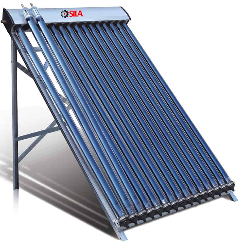 Многослойное покрытие поглощает солнечное излучение и через алюминиевый радиатор нагревает тепловую трубку « Heat Pipe». Внутри тепловой трубки находится легко закипающая нетоксичная жидкость. Под воздействием тепла, жидкость, находящаяся в нижних секциях тепловых трубок испаряется и поднимается в виде пара в верхнюю часть тепловой трубки. В верхней части тепловой трубки находится конденсатор, который передает тепло горячего пара теплоносителю, проходящему через манифольд. Отдавая тепло, пар конденсируется в жидкость и возвращается в нижние секции тепловых трубок для следующего нагрева. В солнечных коллекторах SILA используются инновационные тепловые трубки « Heat Pipe» с никелевым покрытием конденсатора. Никелевое покрытие улучшает передачу тепла и предотвращает «прикипание» конденсатора к манифольду, что позволяет, при необходимости, демонтировать вакуумную трубку не повредив манифольд. В солнечных коллекторах Sila используются два размера конденсаторов: стандартный размер 14 мм (серия R5) и конденсаторы увеличенного размера 24 мм (серия R1) для более эффективного нагрева теплоносителя.